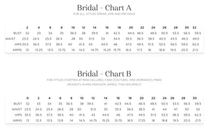 Every designer has their own unique size chart, meticulously tailored to their distinct measurements and fit. To assist you in making the perfect choice, please consult the size chart provided by the designer of your selected gown. Our knowledgeable team is here to guide you through the process, ensuring that you confidently choose the size that will make you look and feel your absolute best on your wedding day.